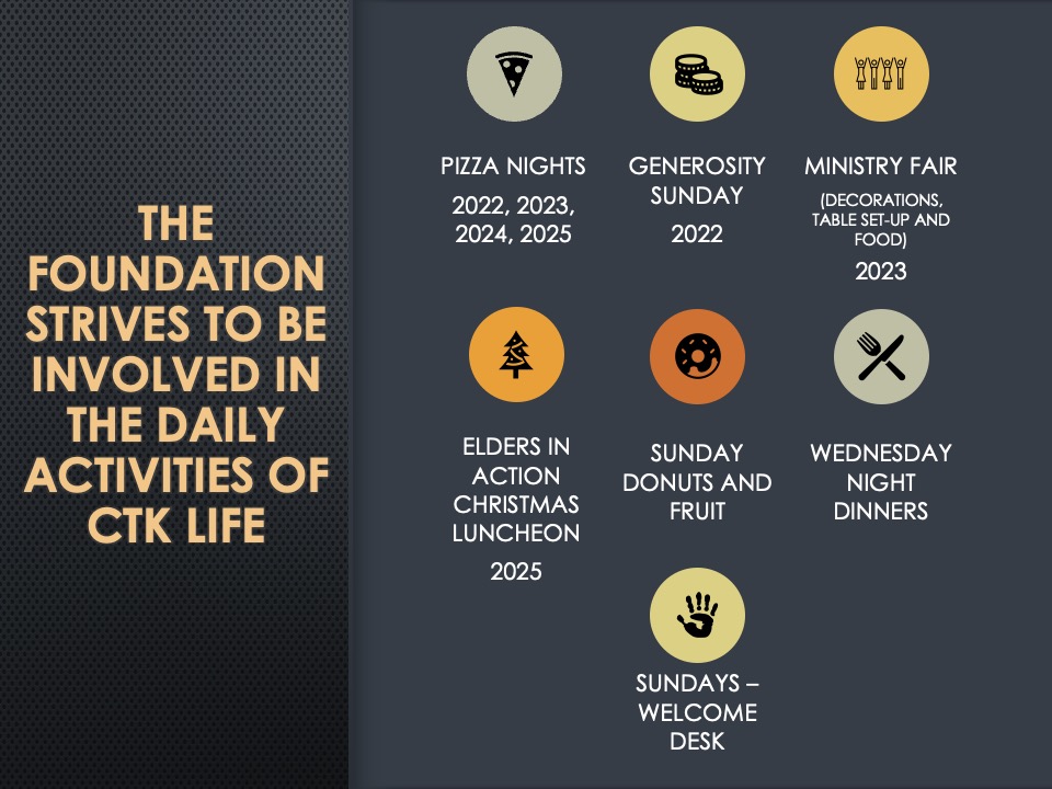 Checks can be made payable to Christ the King Foundation and put in the mail slot/Steve Zenz in the church office.