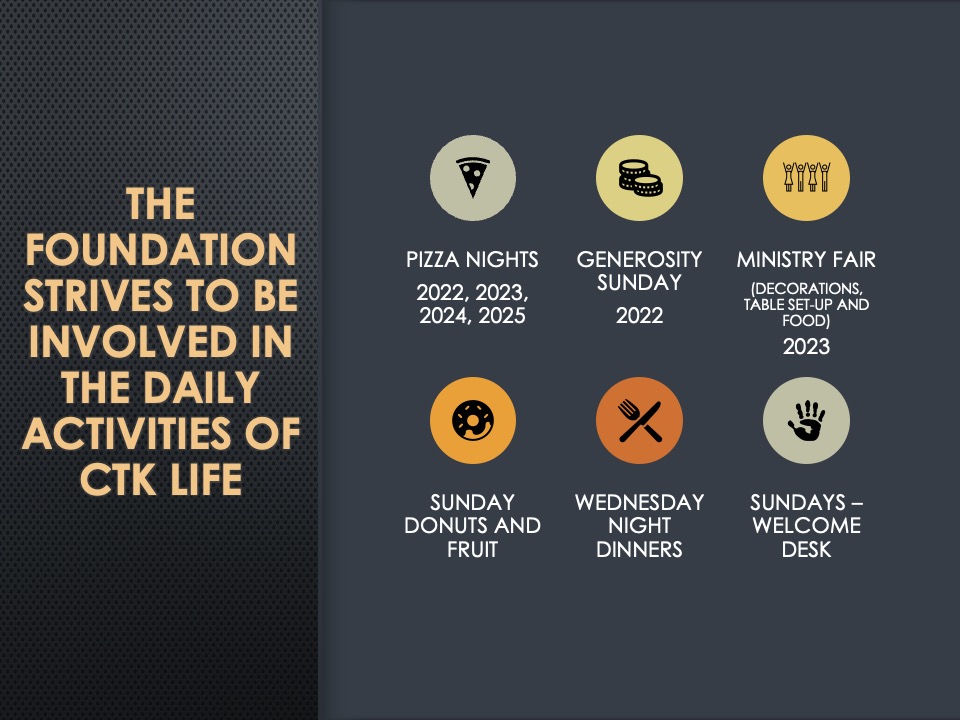 Checks can be made payable to Christ the King Foundation and put in the mail slot/Steve Zenz in the church office.